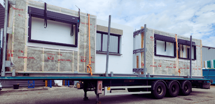 Les panneaux préfabriqués sont assemblés en usine suivant des règles constructives très strictes, permettant d’avoir une qualité maîtrisée avec d’excellente performances techniques et mécaniques. Un système d’assemblage rapide, précis et stable dès le premier angle. L’assemblage des composants, y compris les membranes d’étanchéité pare vapeur et pare pluie de ces panneaux se fait en usine afin de livrer des façades complètes. Toute finition est possible sur chantier : enduit, bardage bois, bois composite etc.
